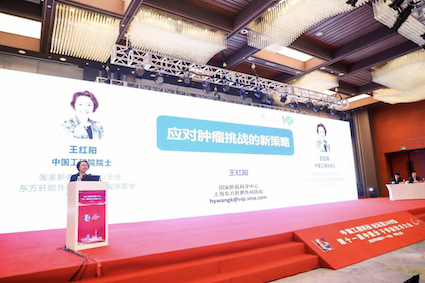 國(guó)家肝癌科學(xué)中心主任、東方肝膽外科醫(yī)院腫瘤臨床醫(yī)學(xué)中心主任王紅陽(yáng)院士作報(bào)告