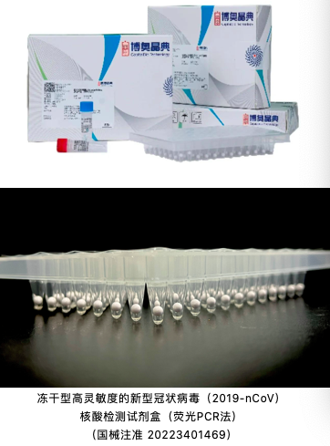 此次海外首展的博奧晶典凍干型高靈敏度的新型冠狀病毒(2019-nCoV)核酸檢測(cè)試劑盒 (熒光PCR法),靈敏度達(dá)到150拷貝/毫升,且各樣本之間的獨(dú)立性好,結(jié)果準(zhǔn)確,可一次分別實(shí)現(xiàn)對(duì)新型冠狀病毒ORF1ab基因和N基因的檢測(cè),最快40分鐘內(nèi)完成擴(kuò)增檢測(cè),滿足臨床對(duì)樣本質(zhì)量及檢測(cè)過(guò)程的全程監(jiān)控,確保結(jié)果準(zhǔn)確可靠,讓檢測(cè)更加省心。采用凍干微球?qū)@夹g(shù),將擴(kuò)增反應(yīng)所需試劑提前預(yù)混凍干,破局冷鏈運(yùn)輸,讓儲(chǔ)運(yùn)更省力節(jié)能。