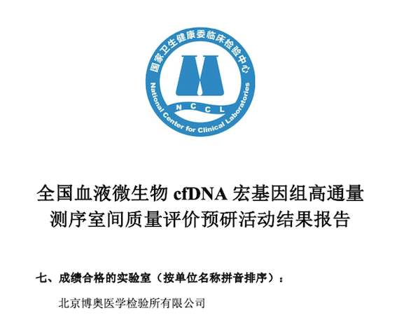 今日,國(guó)家衛(wèi)生健康委臨床檢驗(yàn)中心(以下簡(jiǎn)稱“臨檢中心”)公布了2023年“全國(guó)血液微生物cfDNA宏基因組高通量測(cè)序室間質(zhì)量評(píng)價(jià)預(yù)研活動(dòng)結(jié)果報(bào)告”。博奧晶典旗下北京博奧醫(yī)學(xué)檢驗(yàn)所順利通過(guò)本次室間質(zhì)評(píng),并且檢測(cè)病原體與樣本預(yù)期結(jié)果完全一致。