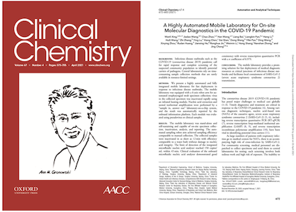 “全集成核酸快速檢測(cè)芯片系統(tǒng)的研發(fā)及臨床應(yīng)用”項(xiàng)目實(shí)現(xiàn)了多種需求場(chǎng)景下的“樣本進(jìn)-結(jié)果出”式高靈敏快速檢測(cè)?;谌乱淮冗M(jìn)的芯片實(shí)驗(yàn)室(Lab-on-a-chip)設(shè)計(jì)理念,化繁為簡(jiǎn),檢測(cè)時(shí)僅需將樣本保存液加入芯片,封閉芯片后即可上機(jī),手工操作小于1分鐘。生物反應(yīng)全程(包括核酸提取、核酸純化、擴(kuò)增反應(yīng)、核酸檢測(cè)和結(jié)果判讀等)均集成在一個(gè)整體密閉、內(nèi)部分區(qū)的微流控芯片內(nèi),由全自動(dòng)核酸分析儀完成,因此無需專業(yè)分區(qū)實(shí)驗(yàn)室,無需人工干預(yù),最大程度降低操作人員感染及樣本間交叉污染的風(fēng)險(xiǎn)。45分鐘完成實(shí)驗(yàn)全過程,最快35分鐘報(bào)告新冠陽性結(jié)果,檢測(cè)靈敏度達(dá)到150拷貝/毫升,相關(guān)成果在國(guó)際檢驗(yàn)醫(yī)學(xué)界權(quán)威雜志Clinical Chemistry上發(fā)表。