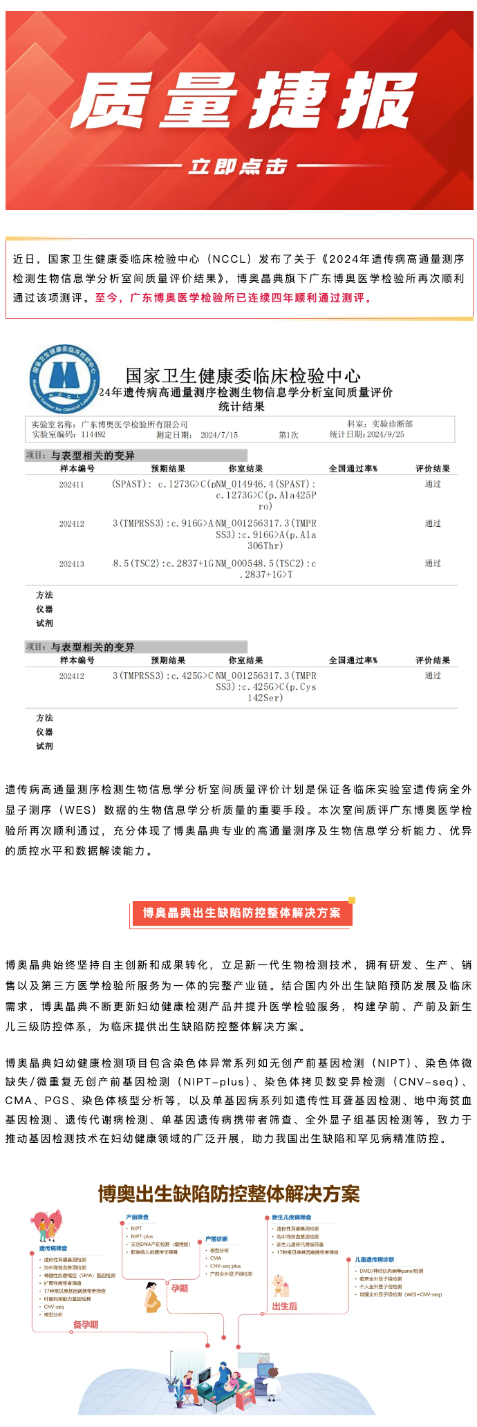 喜訊丨博奧晶典旗下檢驗所滿分通過2024年NCCL遺傳病高通量測序檢測生物信息學(xué)分析室間質(zhì)評